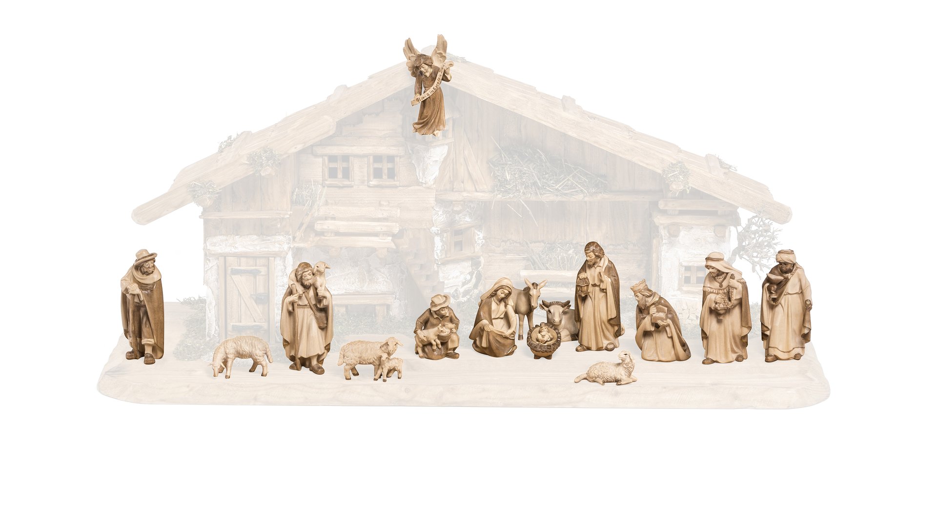 Bergweihnacht Krippenset 15 Teile mehrfach gebeizt