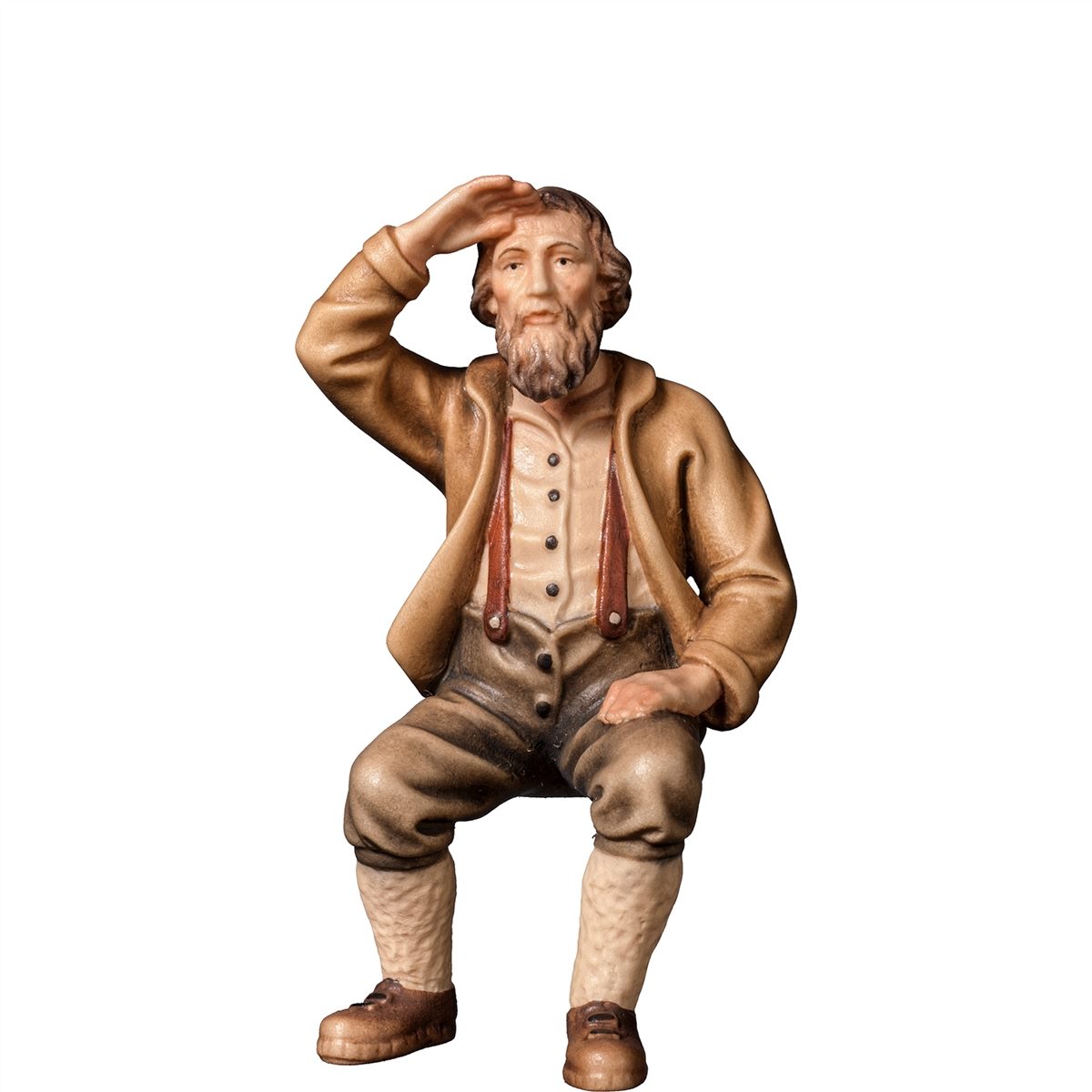 Bauer sitzt und schaut koloriert