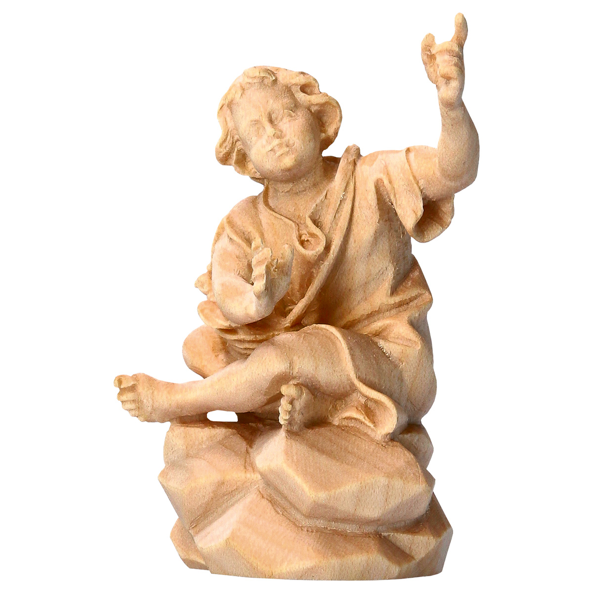 Junge sitzend an der Feuerstelle