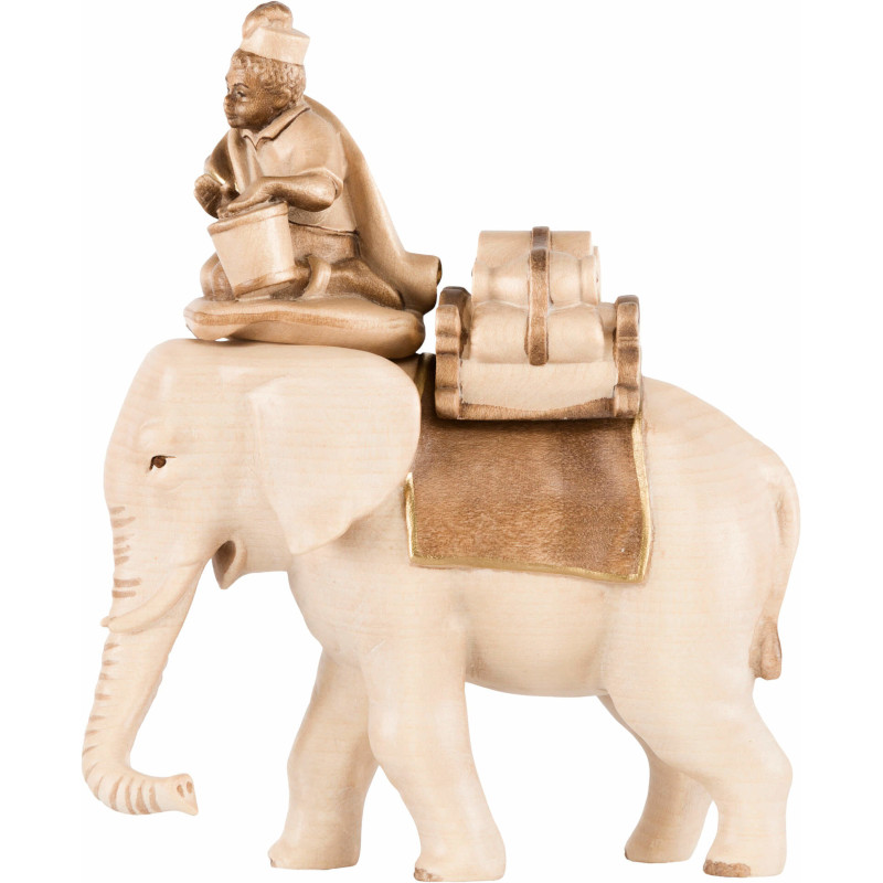 Elefant mit Reiter und Gepäck gebeizt